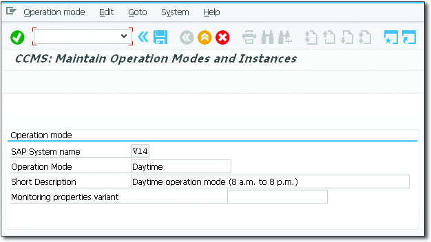 - Enter one of the operation modes you created (e.g., “Daytime”) in the Operation mode field, or use the input help to select an operation mode. You can use the